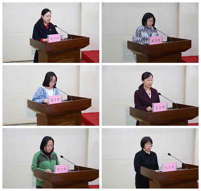 党委书记冯瑞明作讲话 党委副书记、院长段文美作点评 纪委书记段文辉作主持 副院长尤陶江作点评 副院长张耀川作点评 先进典型事迹发言教师 中层干部述职