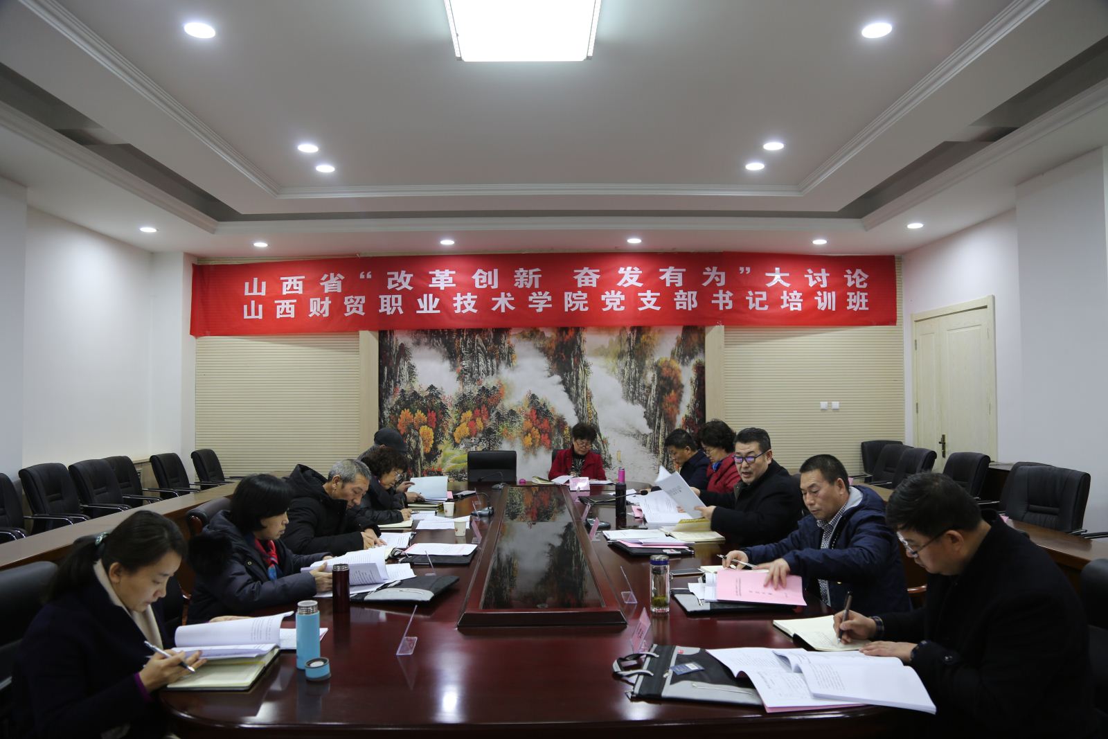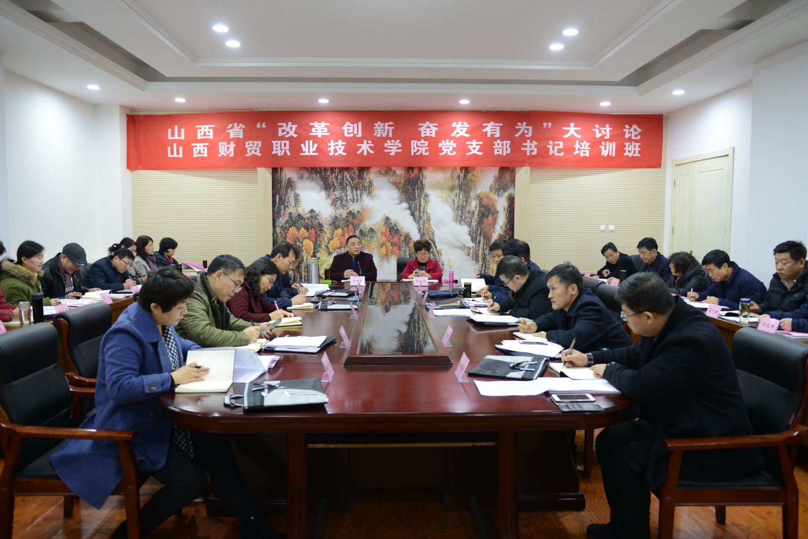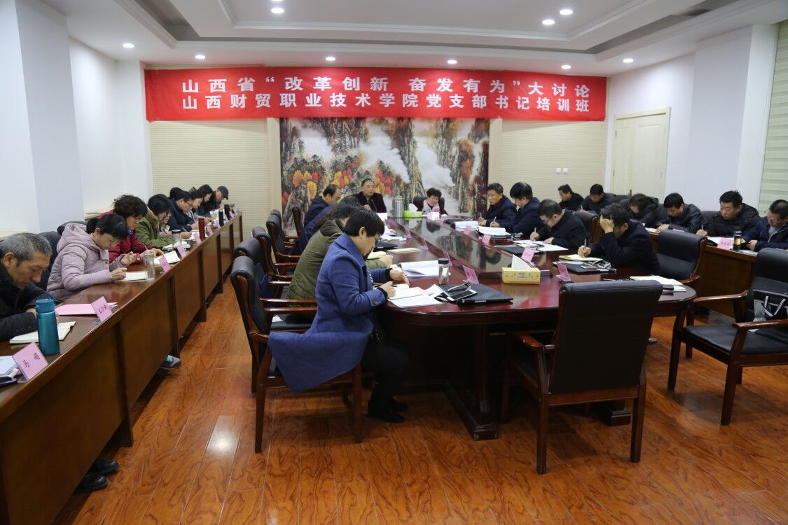 此次培训为期三天,采取动员辅导、集中学习、专题培训、分组讨论、解答提问、交流总结等灵活多样的方式进行。培训期间,学院领导班子成员、“两委”委员、各党总支、党支部书记分为三个小组进行了学习研讨。各小组围绕省委十一届六次、七次全会和省委经济工作会议精神、“改革创新、奋发有为”大讨论实施方案、全国和全省教育工作会议精神等内容进行了集中学习;重点围绕“六个破除”“六个着力”“六个坚持”,结合学院工作实际,深刻领会大讨论的目的意义、主要内容、具体要求和方式方法等进行了分组讨论;集中组织观看了《习近平总书记在庆祝改革开放40周年大会上的重要讲话》视频和《总书记在山西》专题片;邀请了山西大学历史文化学院社会史中心党支部书记、全国首批全国高校“双带头人”教师党支部书记胡英泽教授,作了《以习近平新时代中国特色社会主义思想为指引,写好高校党建和思政工作“奋进之笔”》为题的专题辅导。