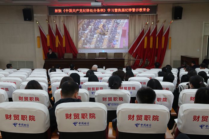 11月12日下午,我院在砺志楼大报告厅召开新修订《中国共产党纪律处分条例》暨换届纪律警示教育会。院领导班子成员和全体党员参加了学习。纪委书记段文辉主持学习会。