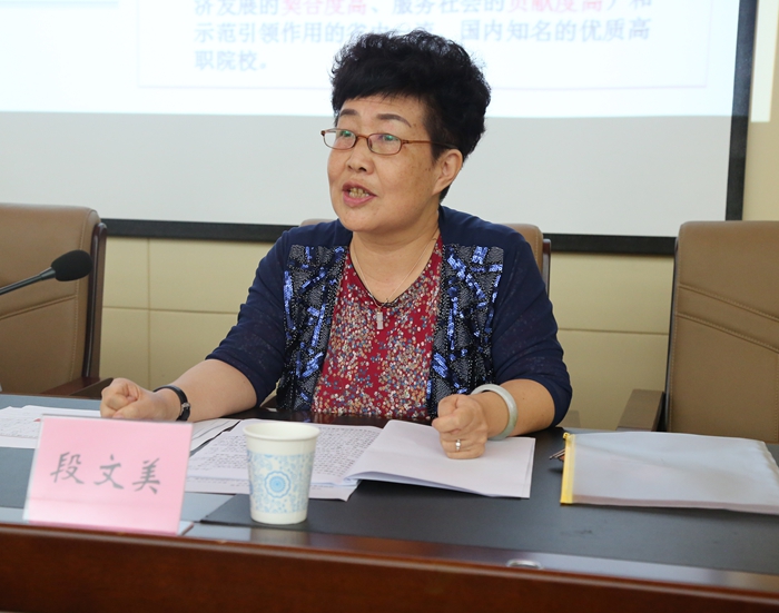 段文美院长首先总结了上学期及假期工作。一是面对优质校建设短板,开始全面发力,补短板、强特色、求突破,在多个项目上突破,取得了成绩。二是全院教职工的岗位绩效补发已全部到位,基本实现了岗位绩效管理改革目标和预期效果。三是集中完成了本年度人才招聘笔试及招生工作。接着,安排部署了本学期的重点工作。一要做好开学的一切准备工作;二要积极开展扫黑除恶的专项斗争,做好校园安全稳定工作;三要重点抓好优质校建设目标任务系列工作。