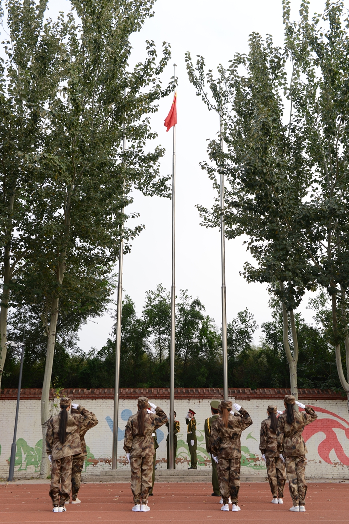 随着“迎国旗”的口令,国旗护卫队队员们迈着整齐、矫健的步伐走向升旗台,在庄严激昂的国歌声中,五星红旗迎着朝阳冉冉升起,师生们肃然而立,向国旗行注目礼,表达对祖国无限的热爱和崇高的敬意。