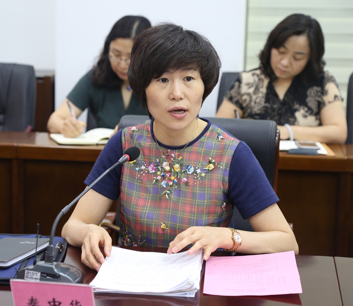 评估组组长秦中华讲话。她说明了本次评估检查的目的、内容和形式,提出了具体要求。希望通过评估检查促进学院建立职能清晰、管理科学、责权分明、高效规范的运行机制,推动解决基础工作方面存在的普遍问题,使高校基础工作上一个新的台阶。