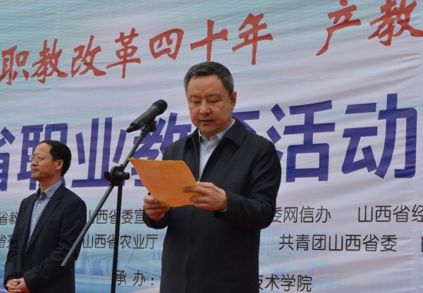 5月6日上午9:30,山西省2018年“职业教育活动周”启动仪式在山西交通职业技术学院文华校区隆重举行。启动仪式由省高校工委书记、省教育厅党组书记、厅长吴俊清同志主持,省政协李青山副主席发表讲话并宣布职教活动周启动。
