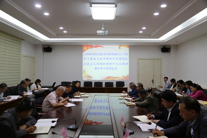 为进一步教育引导广大干部深刻领会习近平新时代中国特色社会主义思想和党的十九大精神,根据省委组织部和省高校工委的安排部署,我院处级以上干部学习贯彻习近平新时代中国特色社会主义思想和党的十九大精神集中学习班正式开班。5月7日下午2:00,我院在小报告厅举行了开班仪式,党政领导班子成员及处级以上干部(含各部门负责人)参加了开班仪式。仪式由党委副书记、院长段文美主持。
