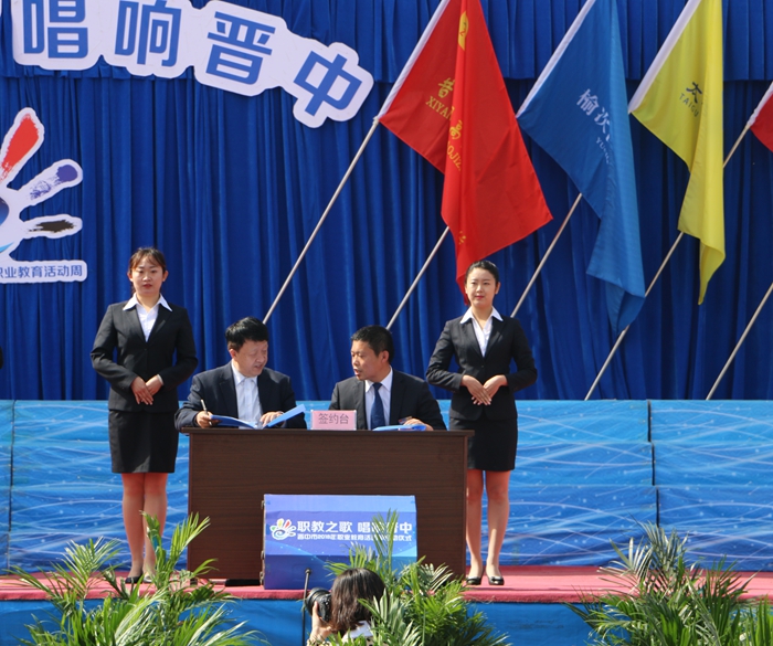 晋中市2018年职业教育活动周启动仪式在太谷职业中学隆重召开,场面十分热烈。启动仪式在太谷职业中学树人广场举行,上午九点,随着开场舞《中国职业职教之歌》拉开了启动仪式的大幕,在这热烈非凡、备受媒体关注的现场,来自全国各地的企业和学校代表有序地上台签订校企、校校合作协议。