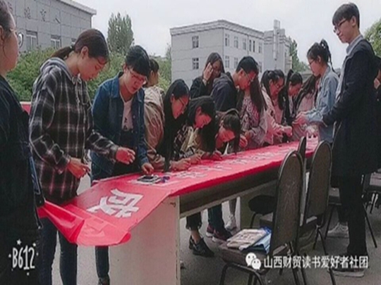 为认真学习贯彻落实党的十九大精神,深刻领会习近平总书记系列重要讲话精神,培育和践行社会主义核心价值观,激发我院学生读书的兴趣,营造浓厚的读书氛围,养成良好的读书习惯,打造书香校园, 2018年4月23日下午两点,在院团委的大力支持及读书爱好者协会的精心组织下,我院成功举办了“营造书香校园 倡导读书人生”—世界读书日活动。参与本次交流会的有社联主席刘晋豪、读书爱好者协会会长原峰、副会长贾红霞以及书协的全体同学。
