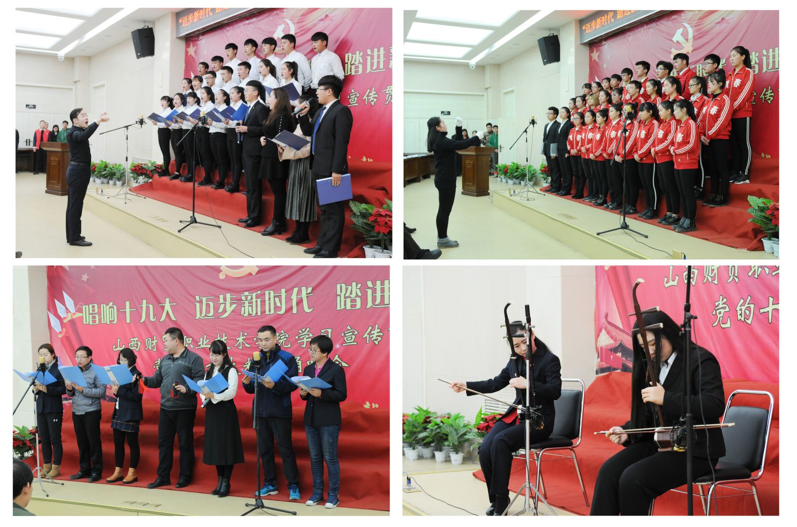 为深入贯彻落实《中共中央关于认真学习宣传贯彻党的十九大精神的决定》,按照我院党委《学习宣传贯彻党的十九大精神工作实施方案》安排,12月13日下午,我院在大报告厅隆重举行学习宣传贯彻党的十九大精神诵唱会。诵唱会由组宣部、院团委联合主办,各基层党团组织协办,各党总支、直属党支部、院团委及各系分团委200余人参加诵唱演出。院领导、全体党员和教职工及部分学生代表观看了诵唱会。党委副书记李志慧主持了诵唱会。