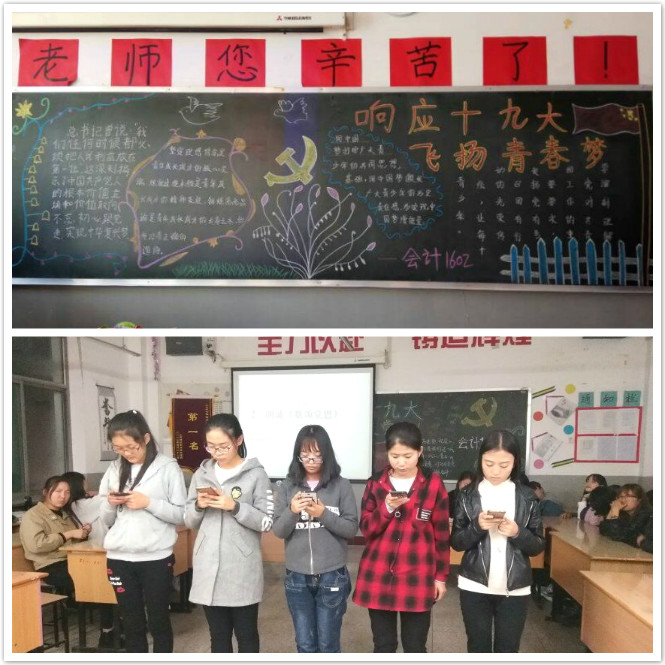 主题班会上,同学们通过PPT讲解十九大相关政策,以黑板报、情景剧、朗诵、歌曲、小品等生动活泼的形式,聚焦青年大学生新的担当和新的使命,更加明确了以习近平同志为核心的党中央的坚强领导,更加自觉地用习近平新时代中国特色社会主义思想统一自己的思想和行动。同学们纷纷表示:作为新时代的大学生,要坚定理想信念,志存高远、脚踏实地,勇做新时代的弄潮儿,争做新时代中国特色社会主义事业的合格建设者和可靠接班人,为实现中华民族伟大复兴的中国梦贡献青春和力量,在推进中国特色社会主义现代化的伟大实践中书写美好的人生。