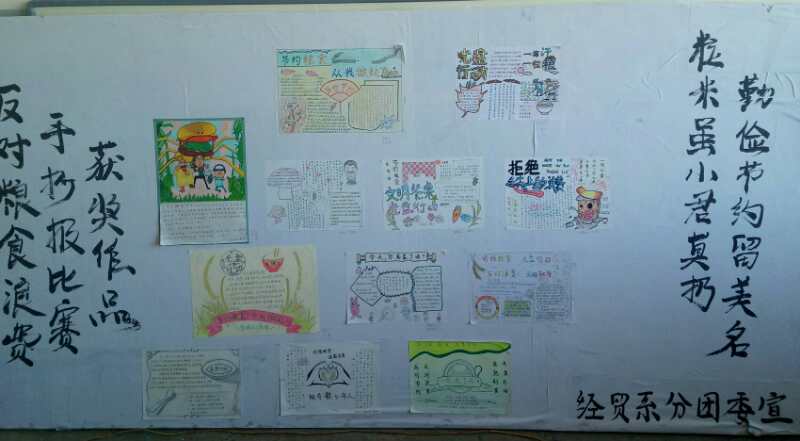 为了进一步增强同学们节约粮食的意识,我系分团委向各班征集以本次活动为主题的手抄报作品。营销1602班的安治平和连锁1601班的高悦同学荣获一等奖,营销1703班的张雨婷、连锁1601班的张昕苗、电商1602班的李文雅和王燕子同学荣获二等奖,营销1601班的王瑞和郭含洁、营销1602班的原峰、电商1601班的史妍、电商1602班的景欢欢和高肖娜同学荣获三等奖。 通过本次系列活动,同学们更加认识到珍惜粮食的重要性,勤俭节约是中华民族的传统美德。节约粮食就是拯救耕地;节约粮食就是爱护环境;节约粮食就是珍爱资源。从现在做起,从自我做起,爱惜每一粒粮食,珍惜他人劳动成果,养成爱粮节粮的好习惯。