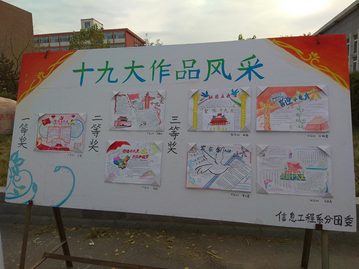 活动期间,各团支部紧紧围绕“青春献礼十九大 不忘初心跟党走”、“我的十九大 青春向前行”等活动主题,组织青年学生以观看录像、座谈、交流分享等方式认真学习了十九大报告精神,围绕切身经历和关注问题进行交流与分享,通过谈信仰、话梦想、见行动献礼党的十九大。同学们表示,党的十九大报告对广大青年寄予了殷切期望,当代青年总体处于一个丰裕的时代、竞争的时代、开放的时代、互联网时代,不同的人生际遇和机缘使我们对民主、法治、公平、权利等方面有着全新的理解和更为迫切的需求,而这些新变化,与“中国特色社会主义进入新时代”的论断有着高度的内在一致性,青年学生要以习近平新时代中国特色社会主义思想为指导,不忘初心、牢记使命,锐意进取、开拓创新,在无比广阔的时代舞台上为新时代打CALL,也给自己加油。另外,信息工程系还组织开展了“聚焦十九大”手抄报比赛,以增强学习宣传的实效性。