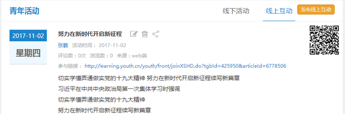 此次系列活动作为学习贯彻习近平总书记十九大报告精神的重要载体,将力求做到常态化,真正使青年学生思想有所触动,认识有所提高,行动有所体现。