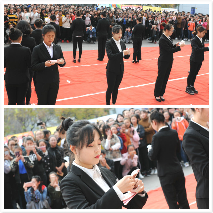 接着,社团学生代表张晓贤发言,并庄严承诺:各社团会在院团委和社团老师的指导下,以饱满的热情,精心组织好各项活动,确保本届社团活动月圆满成功。最后是各社团带来的精彩表演:舞蹈协会和动漫社团带来的宅舞表演《极乐净土》,动作新颖,音乐节奏感强烈,并加入了蝴蝶步和花魁舞步的舞蹈元素,令人耳目一新;跆拳道社团的成员们以其精彩的腾空、旋踢脚法赢得现场观众们的阵阵喝彩;国学社团带来的汉服走秀表演,端庄典雅、飘逸灵动,展现了汉文化服饰下所蕴藏着的深刻内涵;会计技能协会成员带来的花样点钞表演,手法娴熟、动作快速、清点准确,令在场观众惊叹不已。笔过惊起风和雨,墨韵香落书自成,书法协会展示了社团成员的软笔书法,或遒劲有力或娟秀多姿,充分体现了书法的魅力。