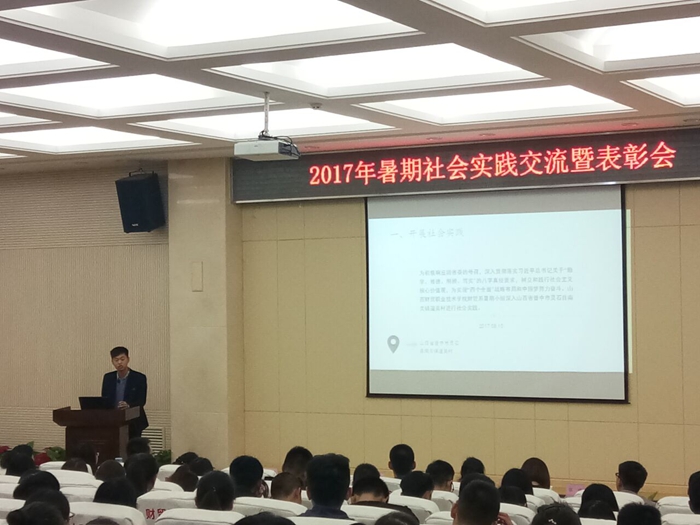 为了更好地总结本次社会实践活动,院团委于10月18日下午13:20在励志楼报告厅举办了2017年暑期社会实践交流暨表彰会。院团委副书记刘秀峰、各系分团委书记及社会实践队员代表参加了本次大会,会上各系选拔推荐的10名优秀实践队员和实践指导教师进行了经验分享。