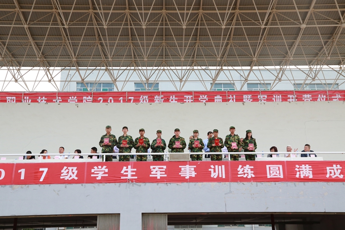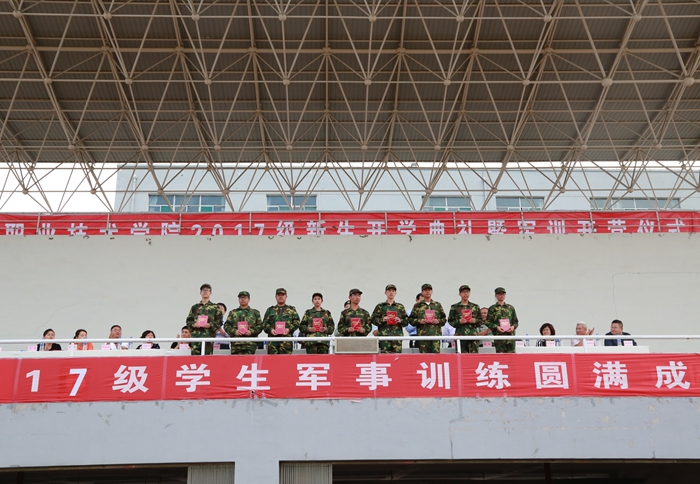 部队首长贾树航副处长讲话。他首先向敢于吃苦、奋力拼搏,顺利完成军训任务的全体同学表示热烈祝贺!通过军训,同学们磨练了意志、增强了体质、强化了纪律观念,是一次成长的锻炼,也是一段难忘的人生经历。希望同学们铭记通过军训学到的知识和做人的道理,以实际行动表达爱国之情。同时要把在军训期间养成的良好品德和作风带到今后的学习中,刻苦学习、踏实做人,以优异的成绩回报父母、回报学校、回报社会。祝老师们身体健康、工作顺利,同学们学业有成! 党委副书记李志慧讲话。他首先代表学院,向给予我院军训工作大力支持的武警8652部队和参训的全体教官表示衷心感谢!向参训的同学们表示亲切慰问!向军训中涌现出的优秀团队和先进个人表示热烈祝贺!本次军训,是根据《中华人民共和国兵役法》和《中共中央关于教育体制改革的决定》要求进行的,是学生接受国防教育的基本形式;是学院贯彻落实党的教育方针政策的一项重要举措。为进一步深化军训成果、发扬军训精神,李副书记向同学们提出了三点意见:一要肯定成绩,发扬吃苦精神。本次军训成绩的取得,是全体参训教官和指导员辛勤付出的结果,是工作人员精心组织的结果,也是同学们意志坚定、吃苦耐劳的最好见证。同学们要谨记军训留给我们的严格组织纪律性,不怕苦、不怕累的作风,坚强的意志和勇往直前的精神,并在今后的校园生活中一以贯之,继续发扬军训精神,吃苦耐劳、刻苦学习。二要坚定信念,保持昂扬斗志。从本学期开始,学院将开展“正学风 比勤奋 强技能”活动,同学们要把在军训中养成的优秀品质和良好习惯在此次活动中展现出来,继续保持积极的人生态度和良好的道德品质,在今后的学习生活,乃至整个人生道路上,始终保持昂扬的斗志,共同勉励、共同奋斗、共同进步。三要勤练技能,夯实职业根基。“不经一番寒彻骨,哪得梅花扑鼻香。”大学不是高考后休息的港湾,而是知识冲浪的海洋;大学不是消耗青春的酒吧,而是心智操练的疆场。同学们一定要珍惜宝贵机遇,刻苦实践,潜心求是,把一双“普通”的手,练就成掌握精湛技艺的“能手”,真正成为具备较强技能的应用型人才,实现自己的人生梦想! 短暂的军训生活虽然结束了,但丰富多彩的大学生活才刚刚开始,希望同学们珍惜时光,学会学习,不断磨砺自己、提升自己,为将来的人生征程打下坚实的基础。