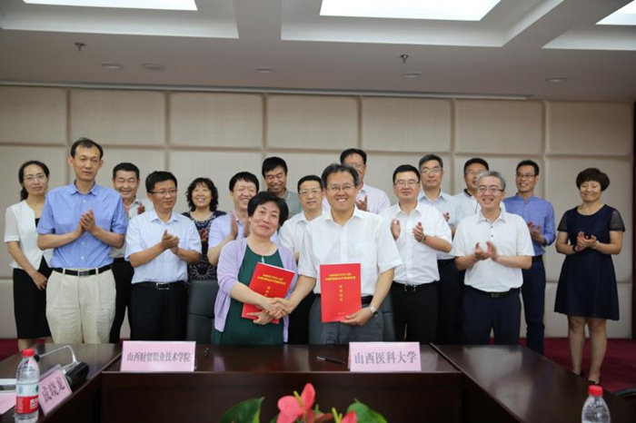 山西医科大学在教学、科研、管理等方面在山西高校序列中有非常明显的优势,山西财贸职业技术学院是一所省级示范性高职院校,学院正处在向优质校迈进的发展过程中。为了发挥山西医科大学在国家级教学名师、国家优秀教学团队、国家特色专业、国家级实验教学示范中心、国家重点学科等方面的平台优势,为山西财贸职业技术学院在师资培养、专业课程建设、实验实训基地建设等方面更好地进行帮助和指导,并进行示范引领和带动,双方于2017年7月7日下午在山西医科大学新校区签订了对口支持框架协议。