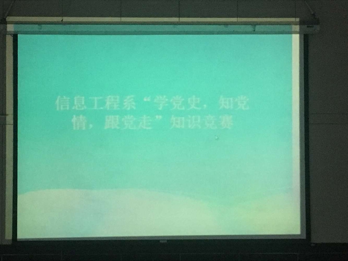 为进一步强化青年学生思想政治引领,引导广大青年从深厚的党史中汲取营养,更好地知党爱党,在学院党课培训期间,信息工程系于2017年6月5日在博学楼东阶梯教室组织本系业余党校学员开展了“学党史知党情 跟党走”知识竞赛活动。