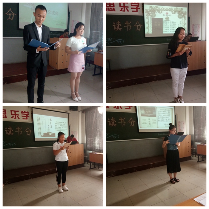 为积极响应学院大思政的工作会议精神,把学生的思想政治教育落到实处,进一步营造浓郁的校园读书氛围,塑造内涵丰富、特色鲜明、品位高雅的班级文化,提升我校学生的综合素质,培养大家多读书、读好书、勤交流的良好习惯。我系分团委于2017年6月13日下午4:00在博学楼1403教室开展了读书分享会。