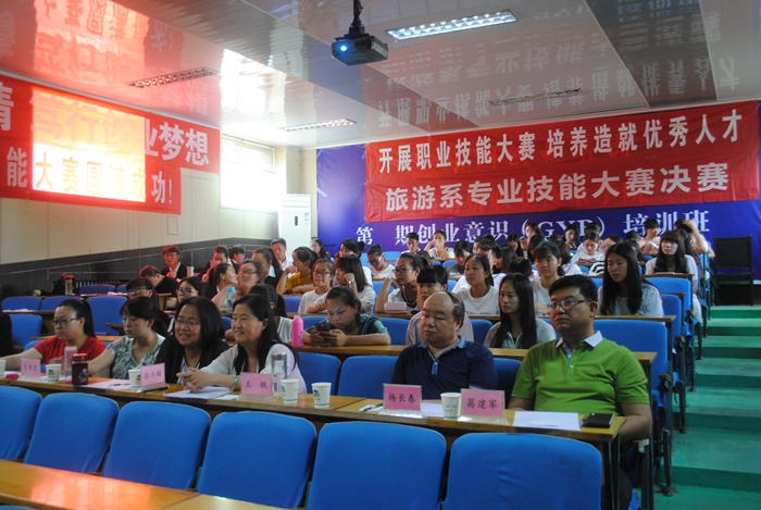 参加本次大赛的有旅游系党总支书记吴艳东老师、主任张志宇老师、办公室主任兰杰老师以及全体大一学生。担任本次决赛的评委有葛建军、张冬梅、王枫、徐鉴、王丽霞、杨长春六位专业老师。