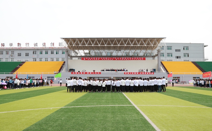 为深入贯彻落实习近平总书记关于高校思想政治工作的重要讲话精神,大力弘扬中华传统文化,积极引导学生培育和践行社会主义核心价值观,大力弘扬“劳动光荣、技能宝贵、创造伟大”的时代风尚,积极践行“工匠精神”,营造健康、文明、和谐的校园文化,学院于5月8日下午2:30在操场隆重举行了2017年职业教育活动周启动仪式暨“弘扬工匠精神传承传统文化”第十六届校园文化艺术节开幕式。黄陵街道办人大常委会主任刘志强、黄陵街道办副主任李志生、煤机社区主任张琳芝、煤机学校党支部书记张晋平应邀出席了启动仪式,学院领导班子全体成员、各系党总支书记及相关部门负责人、学生团干参加了启动仪式。启动仪式由党委副书记李志慧主持。