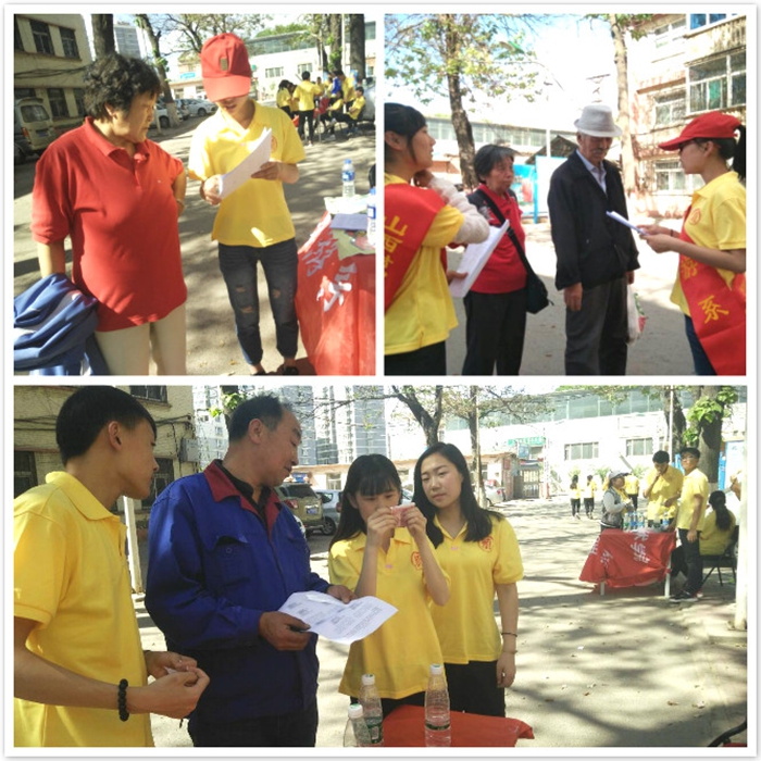 各系充分发挥自身专业优势,积极为社区居民提供专业咨询和技术支持,会计系的同学为社区居民介绍了保险的基本知识以及辨别人民币真伪的方法;财管系的同学为社区居民普及了财务知识,帮助居民合理理财;经贸系的同学宣传了预防电信诈骗知识,为居民分析对比了各类快递的特点以及快递的签收和退货的注意事项;信工系的同学宣传了电脑使用的注意事项和日常维护的基本知识;旅游系的同学宣传了文明旅游的知识并为居民提供了旅游咨询;院团委、院学生会和青年志愿者协会的学生干部向社区居民宣传了我院近年来职业教育改革的成果以及2017年我院招生政策和规模,普及了安全出行和消防安全的相关知识等。同学们耐心细致的讲解、积极认真的服务态度以及过硬的专业素质,展示了我院学生积极、健康、向上的精神风貌,得到了社区居民的称赞和一致好评。