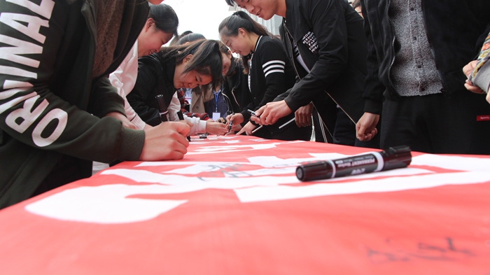学生积极参与签字仪式