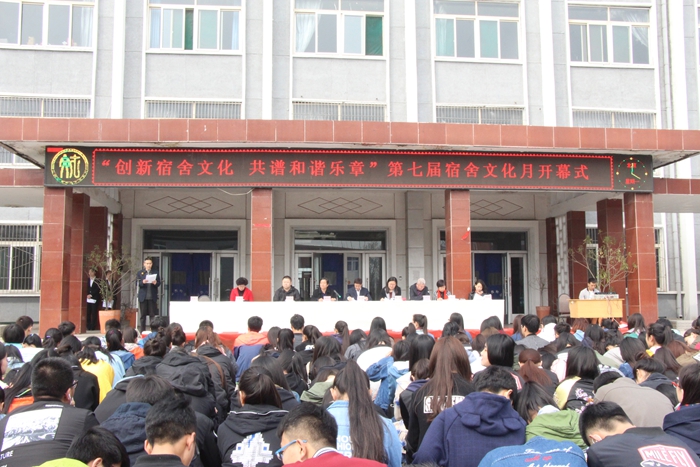 我院于2017年4月10日14:30,在博学楼广场隆重举行了以"创新宿舍文化 共谱和谐乐章"为主题的第七届宿舍文化月活动开幕仪式。