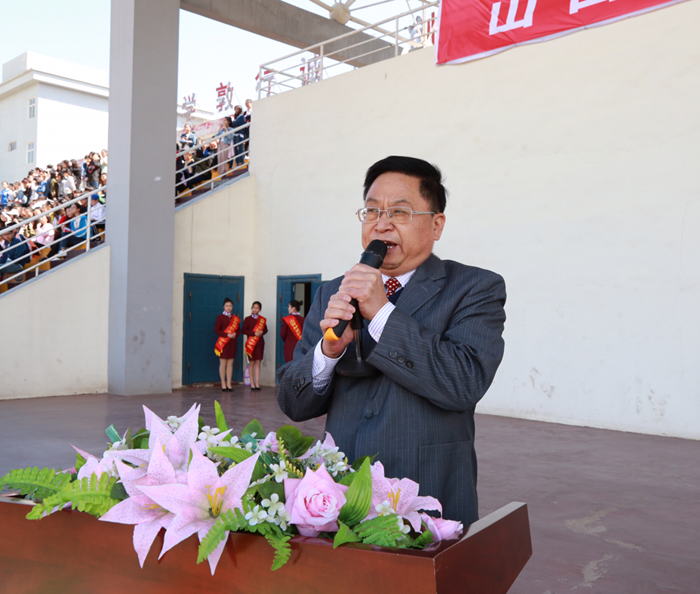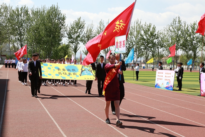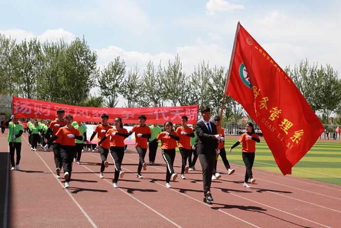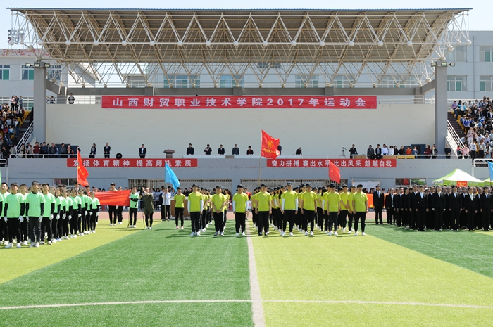 4月21日下午2:00,我院在运动场隆重举行2017年田径运动会开幕式。学院党委书记邓光辉,院长段文美,党委副书记李志慧,纪委书记段文辉,副院长尤陶江、张耀川、郝瑞宏出席了开幕式。学院运动会组委成员、相关部门负责人、全体裁判员和运动员参加了开幕式。开幕式由副院长尤陶江主持。 蓝天白云,春光明媚,运动场上彩旗飘飘,人潮涌动,运动会开幕式在热烈雄壮的《运动员进行曲》中拉开序幕。首先入场的是护旗队,他们手抬国旗,迈着铿锵有力的步伐走过主席台。身穿统一服装的彩旗队和精神饱满的学生会方队,高举鲜艳的彩旗和激奋人心标语牌从主席台前走过。紧随其后的是神采奕奕的裁判员方队,他们将以公平、公正、严谨有序的态度完成裁判工作。由5个系组成的运动员代表方队喊着激昂奋进的口号,高举特色各异的宣传板,以整齐划一的队形,以朝气蓬勃的精神状态依次通过主席台。激奋人心的入场式彰显了我院师生们激情飞扬、团结自强的青春风采和精神风貌。 入场式结束后,举行了升旗仪式。伴随着雄壮的国歌声,五星红旗迎风飘扬,全场起立行注目礼,现场气氛肃穆庄重。 党委书记邓光辉郑重宣布山西财贸职业技术学院2017年田径运动会开幕。 院长段文美致开幕辞。段院长首先代表学院党政领导班子及本次运动会组委会,向运动会如期举行表示热烈的祝贺!向筹备这次盛会的全体工作人员、全体运动员、裁判员表示衷心的感谢和诚挚的问候!她说,体育工作历来是立德树人、全面推进素质教育的一项重要载体。近年来,我院坚持“就业为导向,能力为本位”的办学宗旨,沿着校企合作、产教融合的发展之路,教学改革不断深入,制度建设日益完善,二级管理体制深度推进,学院内涵建设全面加强,课外活动丰富多彩,所有这些都有力地促进了我院素质教育和全民健身运动的开展,使得学院精神文明建设不断深化,校园文化品位日益提升。基础部和学生处、团委、教务处、院办、后勤处、保卫处等相关职能部门为运动会的顺利举行都作了充分的准备,为运动会的顺利召开打下了坚实基础,为体育健儿大展丰采营造了良好的氛围。生命因运动而勃发,青春因运动而多彩,健康是人类最大的幸福。段院长希望每一位运动员都能以饱满的热情,昂扬的斗志,勇于拼搏的精神勇敢面对。希望运动员们团结拼搏,争创佳绩,在我院体育发展的历史长河中留下你们的名字。更希望能够借这次运动会的东风,掀起我院师生体育锻炼的热潮,愿全院师生人人拥有健康的体魄,共同享受精彩的人生。最后,预祝各位运动员取得优异成绩!预祝本届运动会圆满成功! 运动员代表王明月同学和裁判员代表李景璇同学分别发言宣誓。 开幕式结束后,激烈的比赛正式开始,运动健儿们将在接下来的比赛中挥洒汗水,享受运动,共创佳绩。 预祝本届田径运动会圆满成功!