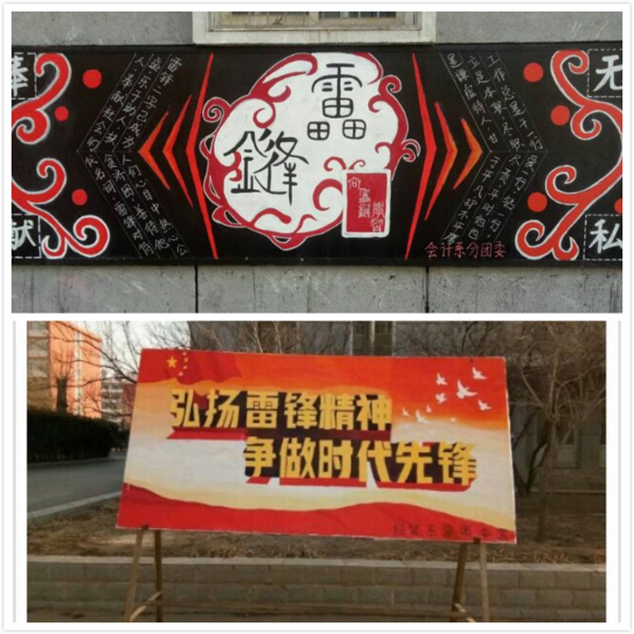 三月春风处处暖,雷锋精神代代传。为深入贯彻落实中共中央国务院《关于加强和改进新形势下高校思想政治工作的意见》的精神,继承和发扬中华美德,弘扬传统文化,培育和践行社会主义核心价值观,号召广大团员青年学习雷锋热爱祖国、热爱社会主义的崇高理想和坚定信念;学习雷锋服务人民、助人为乐的奉献精神;学习雷锋锐意进取、自强不息的创新精神以及艰苦奋斗、勤俭节约的创业精神,院团委结合学院具体实际,在全院范围内组织开展了“学习雷锋精神弘扬传统文化 共建文明校园”主题活动。