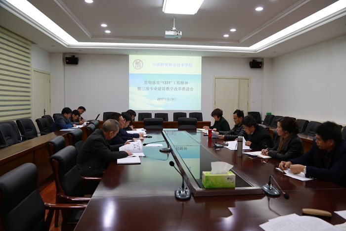 为全面贯彻落实省委、省政府“1331工程”精神要求,统筹推进学院2017年度重点专业建设及教学改革工作,由教务处组织,学院教学指导委员会于2017年3月9日下午2点半在小报告厅召开了贯彻落实“1331工程”精神暨三项专业建设教学改革推进会。院长段文美、副院长尤陶江、学院荣誉顾问周晓明教授、学院教学指导委员会成员及三项专业建设负责人参加了会议。
