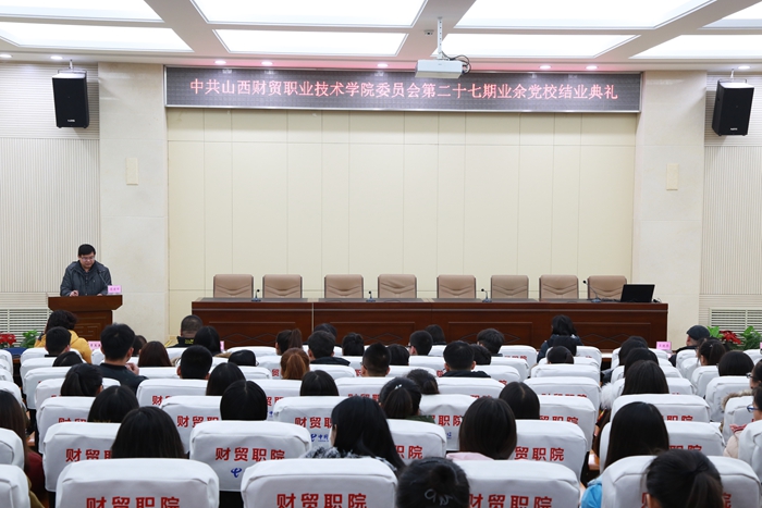 12月21日下午2:30,我院在砺志楼大报告厅举行业余党校第二十七期(总第50期)培训班结业典礼。院党委副书记李志慧、组织部部长、各系党总支书记及全体学员参加了结业典礼。典礼由组织部副部长葛建军主持。
