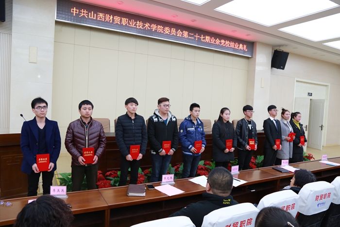 伴随着庄严的国际歌,典礼仪式正式开始。本期培训班于2016年11月7日开学,12月21日结业,共有274名学员参加了集中学习。学习范围涉及党的发展历程、性质、纲领、宗旨、指导思想,党的组织制度、纪律和作风,党的建设、党员发展工作程序和统一战线等内容,同时结合“两学一做”教育活动,认真学习《中国共产党章程》、十八届六中全会精神和骆惠宁书记在省第十一次党代会上的讲话精神。既涵盖了党的基本理论知识,又结合实际,对同学们在思想上和现实中可能出现的困惑进行了解答。经全面考核评定,有273名学员圆满地完成了各项学习任务并顺利结业,10名优秀学员获得表彰。
