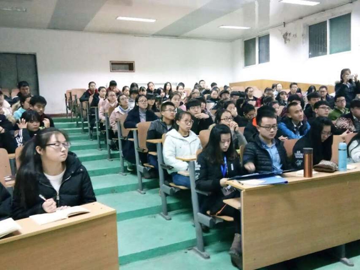 随后,主持人与同学们一起互动。同学们针对如何践行青年马克思主义理论各抒己见,学长学姐们积极分享“三下乡”、“苏宁实习”、“青年志愿者进社区”等活动的收获及感想,使全场的气氛达到了高潮,赢得了阵阵掌声。