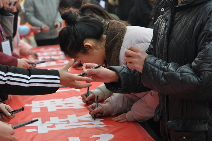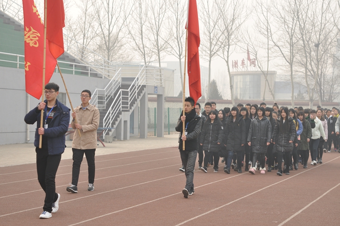 首先主持人介绍了“一二·九”运动的历史背景和基本情况;然后由冯春老师宣布本次纪念活动正式开始。活动的主要环节有:集体宣誓、“善健者、健步走”、爱国签字仪式。在宣誓环节,同学们紧握右拳,肃穆庄严,字字铿锵;在健步走环节,同学们以团支部为单位,高举党旗、团旗、系旗,伴随着嘹亮的口号、整齐的步伐,精神抖擞,阔步向前;在签字环节,大家排队有序的在条幅上签名,期间还有两系的小记者团采访同学们的感受。最后吴老师做了总结发言,希望本次活动能够增强同学们的爱国主义意识,让大家在缅怀革命先烈的同时,也更加珍惜今天的幸福生活,并激励同学们认真学好技能,提升思想道德理论,今后更好的服务于社会。