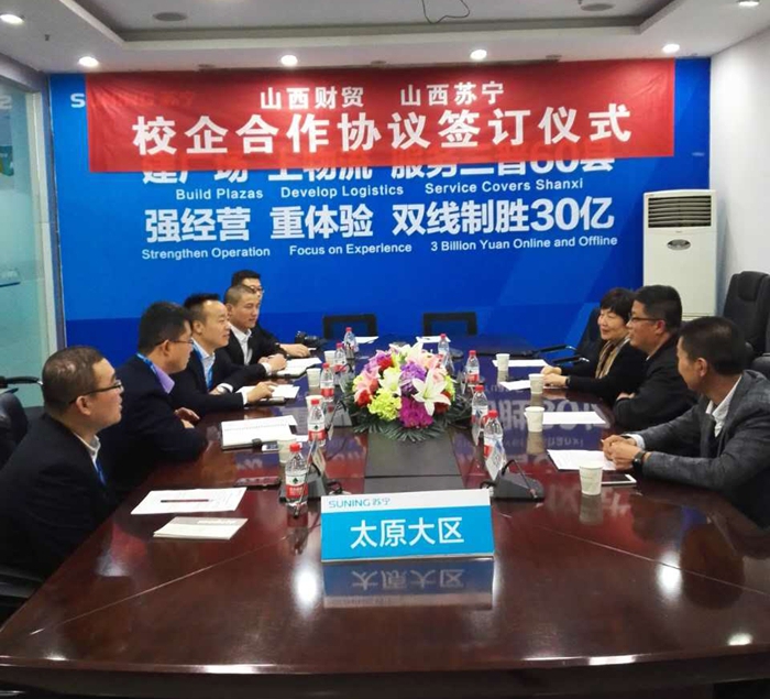 校企双方负责人对下一步的合作进行了探讨,初步达成了后期的发展意向。传统的苏宁电器连锁店以及最新的OTO电子商务模式与我们学院的多个专业都有合作空间。此次合作是我院校企合作的又一大突破,是对接经贸系各专业在行业前沿领域的合作。为我院经贸系下一步人才培养方案制定、课程构建、实践性教学提供了新的思路,将有助于培养更适应山西经济的发展、更具竞争力的高素质商贸物流技能型人才。