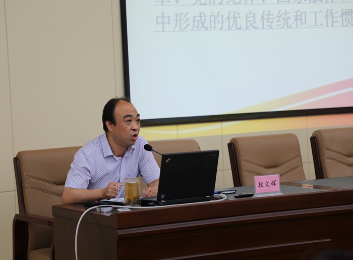 6月20日下午2:30,我院在砺志楼大报告厅组织“两学一做”学习教育“四讲四有”第二次专题研讨。按照我院党委《“两学一做”学习教育实施方案》要求,“四讲四有”专题研讨按主题由学院领导分别进行学习辅导。第二次研讨主题为“讲规矩、有纪律”,由纪委书记段文辉进行集中辅导,全体党员参加了学习。