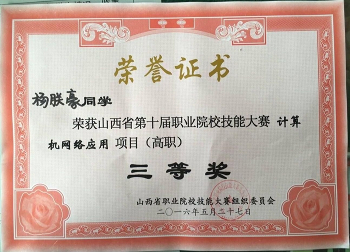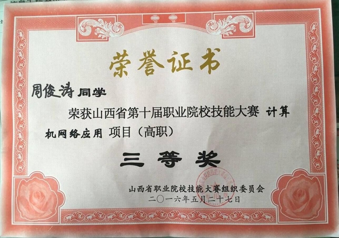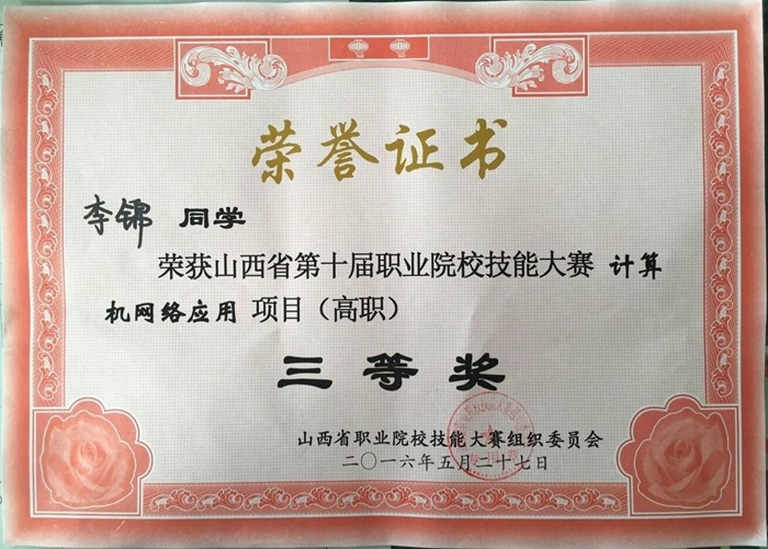 在山西省第十届职业院校技能大赛高职组“H3C”杯计算机网络应用技能大赛中,我院信息工程系代表队喜获“三等奖”和“优秀指导教师奖”。