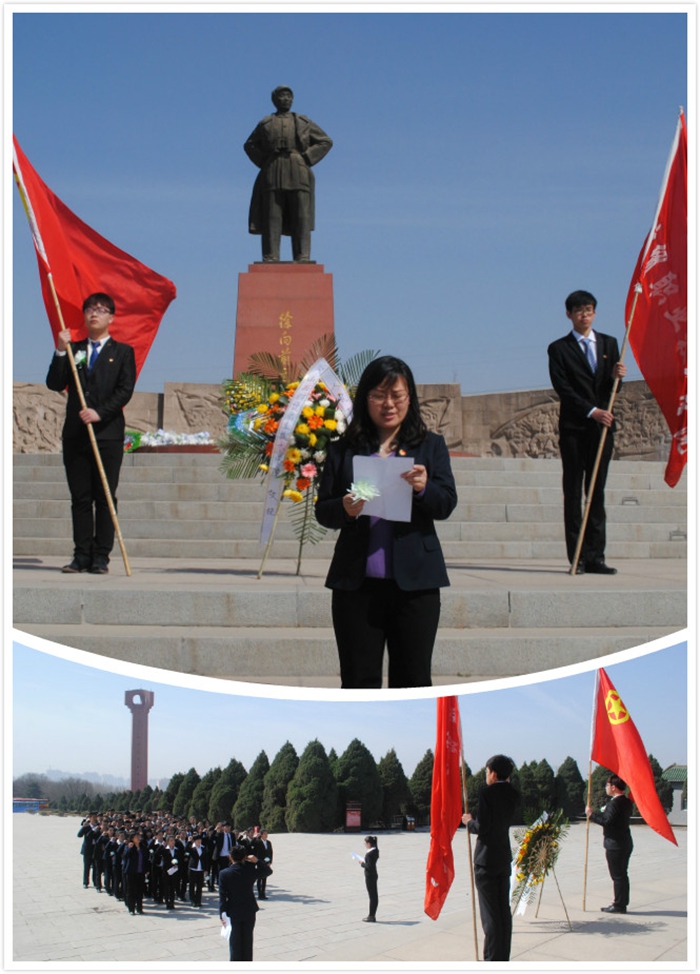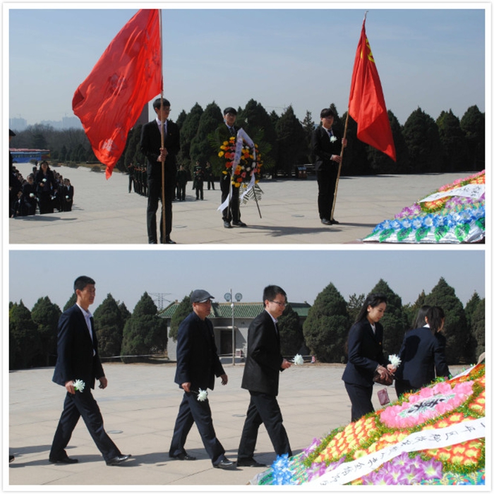 上午8点,参加扫墓的人员统一着装,佩戴着团徽准时在博学楼前集合。9点30分,团员、团干代表高举团旗和校旗,抬着花圈,来到革命烈士徐向前的纪念碑前,举行了隆重的革命烈士纪念仪式。仪式由院团委副书记刘秀峰主持。