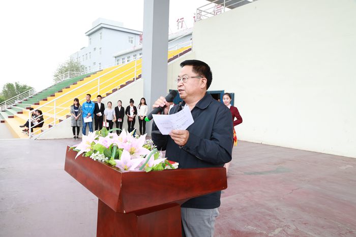 出席本次活动的领导和嘉宾有院党委书记邓光辉,院长李晋平,院党委副书记李志慧,纪委书记段文辉,副院长尤陶江,副院长张耀川,副院长郝瑞宏,党委委员、学生处处长崔景俭,职业教育活动周办公室主任、教务处处长孙金霞,各系书记、主任、分团委书记及相关处室负责人,开幕式由院团委书记马娟主持。在雄壮的国歌声之后,由学院四百人组成的团干队伍集体合唱了团歌——《光荣啊中国共青团》,嘹亮的歌声唱出了财贸学子的蓬勃朝气,激情彭拜的音符彰显了财贸学子勇于拼搏,积极进取的青春活力,大家高举右拳,在团员代表牛雅鑫的带领下,重温入团誓词,牢记使命,不忘初心。随后,院党委副书记李志慧致了开幕辞,他指出:校园文化艺术节是我院实施素质教育的一个重要途径和平台,始终坚持弘扬主旋律、突出高品位,通过开展丰富多彩的校园文化活动,提高学生的综合素质和专业技能。本届艺术节以“筑梦青春绽放未来”为主题,坚持育人为本,以推进素质教育,培养高素质、全面发展人才为目标。以促进就业为导向,注重学生专业技能的培养和综合素质的提升。同时,每年五月的第二周为我院“职业教育活动周”,2016年职业教育活动周的主题是“弘扬工匠精神 打造技能强国”。通过便民服务、校企交流、专业技能知识交流等一系列活动,弘扬社会主义核心价值观和“劳动光荣、技能宝贵、创造伟大”的时代风尚,促进职业教育产教融合、校企合作培养合格技术技能人才,促进大众创业、万众创新。希望全院各级团学组织在院党委的正确领导下,按照本次活动方案的要求,认真组织,精心指导,把本届校园文化艺术节和职业教育活动周在安全,平稳的前提下开得圆满,开得成功,开得精彩。院团委副书记刘秀峰宣读了第十五届校园文化艺术节活动方案,学生代表闫泽芳进行了发言。在院党委书记邓光辉郑重宣布“筑梦青春绽放未来”第十五届校园文化艺术节暨“弘扬工匠精神、打造技能强国”2016年职业教育活动周正式开幕之后,由院团委舞蹈队的六十六名队员带来了精心准备的搏击操表演,他们一招一式充满力量,一个个身影英姿飒爽,展现出财贸学子不屈不挠、敢于挑战的勇气和豪气,赢得观众们的阵阵掌声。