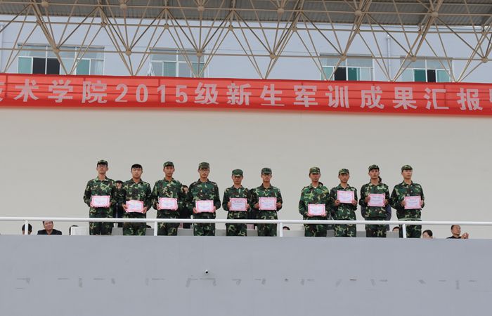 汇报表演后,党委副书记李志慧宣布了优秀方队和军训优秀学员的表彰决定。院领导及教导员李帅喜为受表彰的方队和优秀学员颁奖。