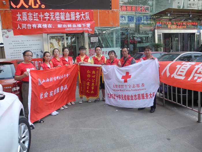 7月11日逐梦者们在山西省血液中心、太原市血液中心(影都献血屋、南宫献血屋、铜锣湾献血车、千峰南路献血屋等多个地方)开展无偿献血志愿宣传、服务为期三天的社会实践活动。