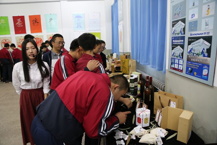 合影留念 参观晋商文化墙 师生们进行职业体验 教务处长孙金霞陪同社区人员参观物流中心 广告专业学生作品展示 旅工专业学生作品展示