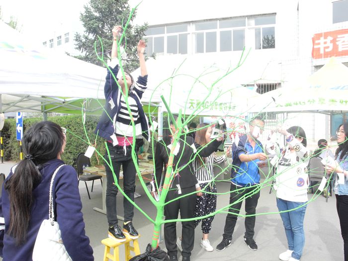 2015年4月22日下午2:00此项活动在图书馆前正式启动,本次活动的主要内容有:1、爱书、惜书、做图书小医生活动;2、书写愿望,共建愿望树;3、发放我院图书馆、电子图书、阅览室等数字资源的宣传资料;4、手绘个性书签;5、图书贴吧;6、按图索骥,纵横书海。7、读书爱好者协会原创“支援山区读书娃”话剧表演。在活动举办过程中,学院领导、老师和同学们积极参与,交流读书心得,活动现场气氛热烈。