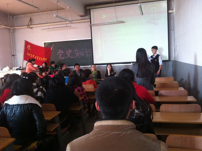 为响应院党委开展“基层党组织提升年”活动的号召,更好地加强大学生思想政治教育,促进我系学生学习党史知识,会计系党总支举办了首届“党史知识竞赛”。本次活动由学生党员先锋社承办,主要针对会计系大一和大二年级在校生展开。经过初赛、复赛的激烈角逐,2014年11月24日,本次竞赛的最后一场比赛——团体赛决赛在诚信楼2513教室举行。