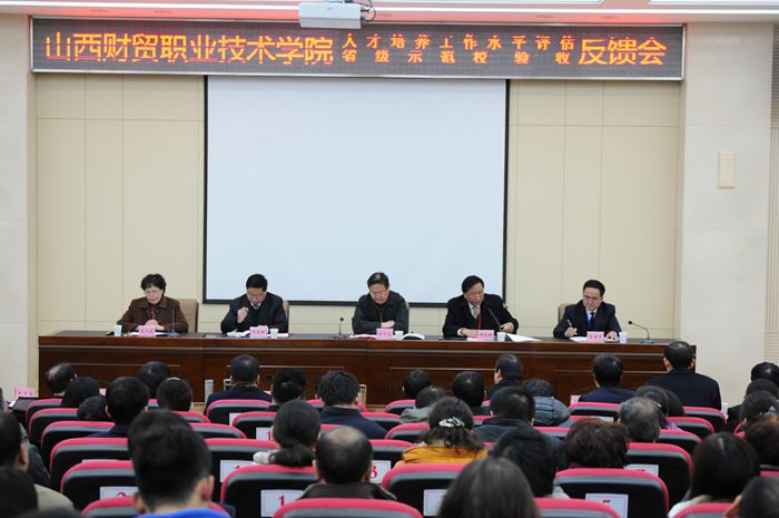 12月11日下午4:30,省人才培养水平评估和省级示范校验收专家组在我院砺志楼大报告厅召开评估验收反馈会。组长周晓明代表专家组宣读了反馈意见,专家陈清胜宣读了示范校验收报告。我院李晋平院长作了表态发言。我院人才培养水平评估圆满结束并顺利通过省级示范校验收。省教育厅副厅长任月忠,专家组全体成员,学院领导出席了会议。副科级以上干部,中级职称以上人员,专业带头人及骨干教师参加了会议。反馈会由专家组副组长张天孙主持。 周晓明组长在反馈意见中首先谈了对我院的总体印象。认为学院以评估为契机,认真贯彻“以评促建、以评促改、评建结合、重在建设”的方针,整体办学实力得到全面提升。并从以下几个方面肯定了成绩:一是服务山西经济社会发展,积极推进专业改革和建设;二是不断创新人才培养模式,课程建设取得阶段性成果;三是注重实践教学基地建设,积极探索校企合作育人模式;四是以学生为中心的育人理念不断加强,职业素质教育扎实有效;五是不断优化办学条件,育人环境得到明显改善。同时,就我院的教育教学改革、师资队伍建设、教学科研能力和社会服务能力方面指出了存在的问题并提出了改进的建议。 陈清胜专家在我院省级示范校验收报告中,肯定了我院示范校建设取得的主要成果,并希望我院在省内同类院校中进一步发挥好示范引领作用。专家组一致同意我院省级示范性高等职业院校建设项目通过省级验收。 李晋平院长代表学院表态发言。他首先感谢各位专家几天来对我院人才培养工作的精心指导和真诚帮助!表示完全同意专家组的反馈意见。会后将反馈意见中提出的问题与建议以及评估过程中提出的问题,召开专题会议研究,制定整改方案,提出整改措施,力求落实。他说,我院围绕人才培养这条主线,做好四篇文章,在提升内涵、优化管理、人文化育和硬件建设四个方面显现了我院人才培养的特色和亮点,成为全省高职院校的示范引领。并提出了下一步设想,一是要积极谋求突破与发展,改善基础办学条件;二是要巩固示范校建设成果,保持省内一流,争取一些专业或办学特色在国内领先;三是花大力气加强师资队伍建设;四是学院各项工作全面优化提升。要沉下心来,脚踏实地找准问题,认真整改,不断进取,做好后示范校建设。最后,再次感谢任月忠副厅长百忙中莅临我院指导工作!感谢专家组悉心指导和帮助!也感谢全院师生职工的辛勤付出! 省教育厅副厅长任月忠作重要讲话。任副厅长首先代表教育厅祝贺我院人才培养工作水平评估获得专家好评并通过省级示范校验收!他指出,我院是省内非常重要的一所院校,三十六年的发展道路坎坷不平且辉煌。近年来,学院的办学条件、校园环境、师生们的精神面貌有了很大的改变,树立了良好的口碑和社会声誉。希望我院能够认真领会专家组提出的建议并落实整改。对我院的发展提出了三点建议:第一,利用本次评估验收契机,总结办学经验,认真研究制定好“十三五”发展规划;第二,开拓性办学、开放性办学,加强校企合作和与外界的联系;第三,注重品牌建设,加大宣传力度。最后,任副厅长强调,我省的职业教育目前面临着很好的发展时机,有着很大的发展空间和宽阔的发展平台。希望我院能够抓住机遇,加强与兄弟院校的交流学习,进一步促进我院的改革发展,实现新的梦想! 我院为期3天的人才培养水平评估和省级示范校验收工作圆满结束,但学院的建设发展永远在路上!
