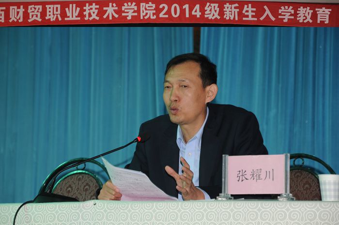 李院长围绕“感受财贸”、“融入财贸”、“热爱财贸”三个方面介绍了学院悠久历史和卓越声誉。特别对我院长远规划和发展目标作了阐述,对我院今后教育教学工作的整体思路,即努力实现转变一个理念,推进两项改革,加强三项建设,实现四个对接,力争五个突破的“12345”教学质量提升工程进行了具体诠释。他和新同学一起感受财贸深厚底蕴,畅想学院美好未来,并指导他们迈好大学第一步,规划好大学学习生活。他要求新同学做到:一要坚守核心价值观,积攒传递正能量;二要坚持自主创新学习,掌握科学学习方法;三要坚定求真务实,立志成为栋梁之才。希望新同学能够以习近平总书记提出的四个标准严格要求自己,培养世界之眼光、理性之思维、质疑之勇气、创新之意识、开放之视野,争做有担当、有爱心、有知识、有创新精神、有国际对话能力的好学生,与学院一起为争创全省一流高职院校而不懈努力,为实现中华民族伟大复兴梦想而共同奋斗!