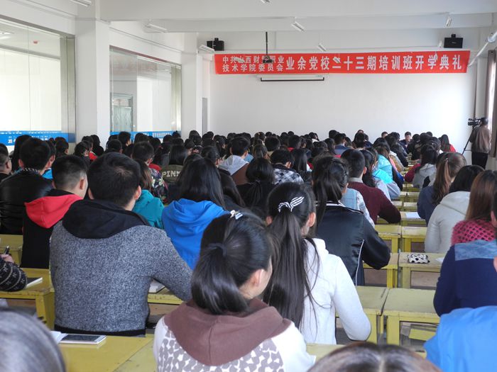 2014年11月5日下午,我院业余党校第二十三期(总第46期)培训班开学典礼在砺志楼报告厅隆重举行。本期学员共有271名学生和3名教师。院党委副书记、院长李晋平,组织部部长雷桂萍、会计系党总支书记邢学军、经贸系党总支书记李光伟、旅游系党总支书记吴艳东、信息工程系党总支书记李美英、财管系党总支副书记罗丽娟出席了开学典礼。典礼由组织部副部长葛建军主持。