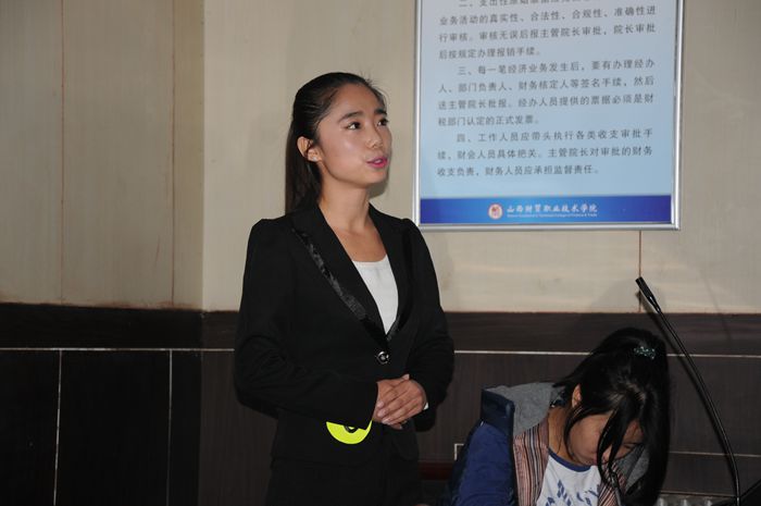 会电1309班的李荣慧同学讲述了在洪洞中盈农资有限公司做会计的实践经历,道出了“做人要实,做事更要认真”的工作原则;商英1301班的刘艳同学与我们分享了在太原市千峰南路今秀盛典主题酒店的实践经历,告诉同学们在工作中必须要有吃苦耐劳、稳抓实干、热情认真的精神;会电1204班的崔旭红同学参加了文化艺术“三下乡”活动,通过讲述活动的筹备及实践过程,告诉了同学们团队精神的重要性;会电1206班的郭二青同学讲述了在井冈山革命根据地的实践经历,号召同学们要在生活和学习中传承革命先烈艰苦奋斗的优良作风,牢固树立跟党走中国特色社会主义道路、为实现中国梦努力奋斗的理想信念。参与交流的11位同学精心地准备了幻灯片,以自己独特的方式清晰条理地和同学们交流了他们的实践经验。随后,院团委老师为他们颁发了社会实践优秀个人的证书和奖品。