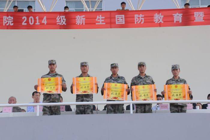 汇报表演后,党委副书记李志慧宣布了优秀方队和军训优秀学员的表彰决定,院领导及霍参谋为受表彰的方队和优秀学员颁奖。