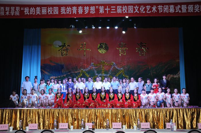 证书与荣誉记载下昨日的拼搏与辉煌,鲜花与掌声彰显出明日的追求与荣耀。2014年6月4日晚7点,“我的美丽校园 我的青春梦想”第十三届校园文化艺术节闭幕式暨颁奖晚会在学院礼堂隆重举行。院党委书记邓光辉、院长李晋平、院党委副书记李志慧、副院长尤陶江、副院长郝瑞宏出席了闭幕式,相关处室及各系部主任、团总支书记、2013级全体同学和班主任老师参加了此次活动。