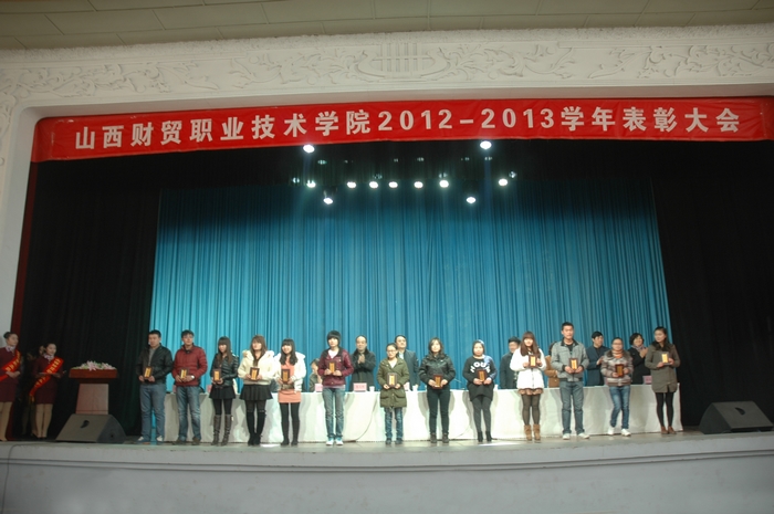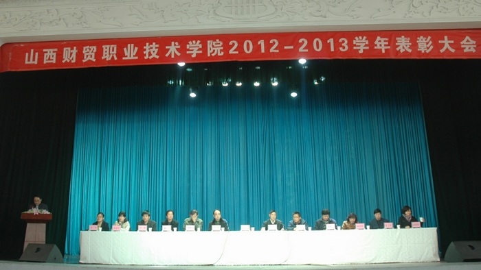 2013年12月2日下午2:00,山西财贸职业技术学院2012—2013学年表彰大会在大礼堂隆重召开。院党委书记李晋平、院党委副书记李志慧、纪委书记段文辉、副院长尤陶江、张耀川、郝瑞宏、学生处处长崔景俭、教务处处长孙金霞、院团委书记马娟、会计系主任宁健、计算机系主任费志民、旅游系主任张志宇、经贸系负责人杜焕香出席了此次表彰大会。参加本次会议的还有各系分管学生工作的副主任、全体班主任、学生处、团委全体人员以及2013级全体学生。